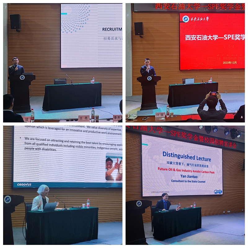 12月12日下午,李齐军一行前往鄠邑校区,面向在校生开展SPE奖学金宣讲、毕业生招聘和学术交流等活动。科技处副处长丁昌峰和SPE南海分会委员闫猛分别主持相关活动。