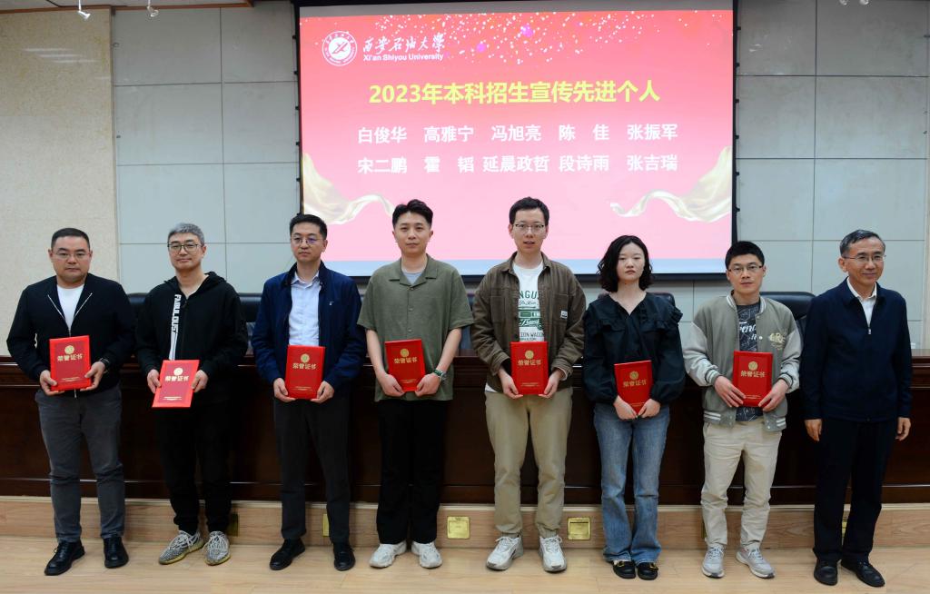 张木宣读了学校《关于表彰2023年本科招生宣传工作先进集体和先进个人的决定》,对6个集体和25名个人进行了表彰。王进富和张木分别为获奖集体和个人颁发了奖牌和证书。