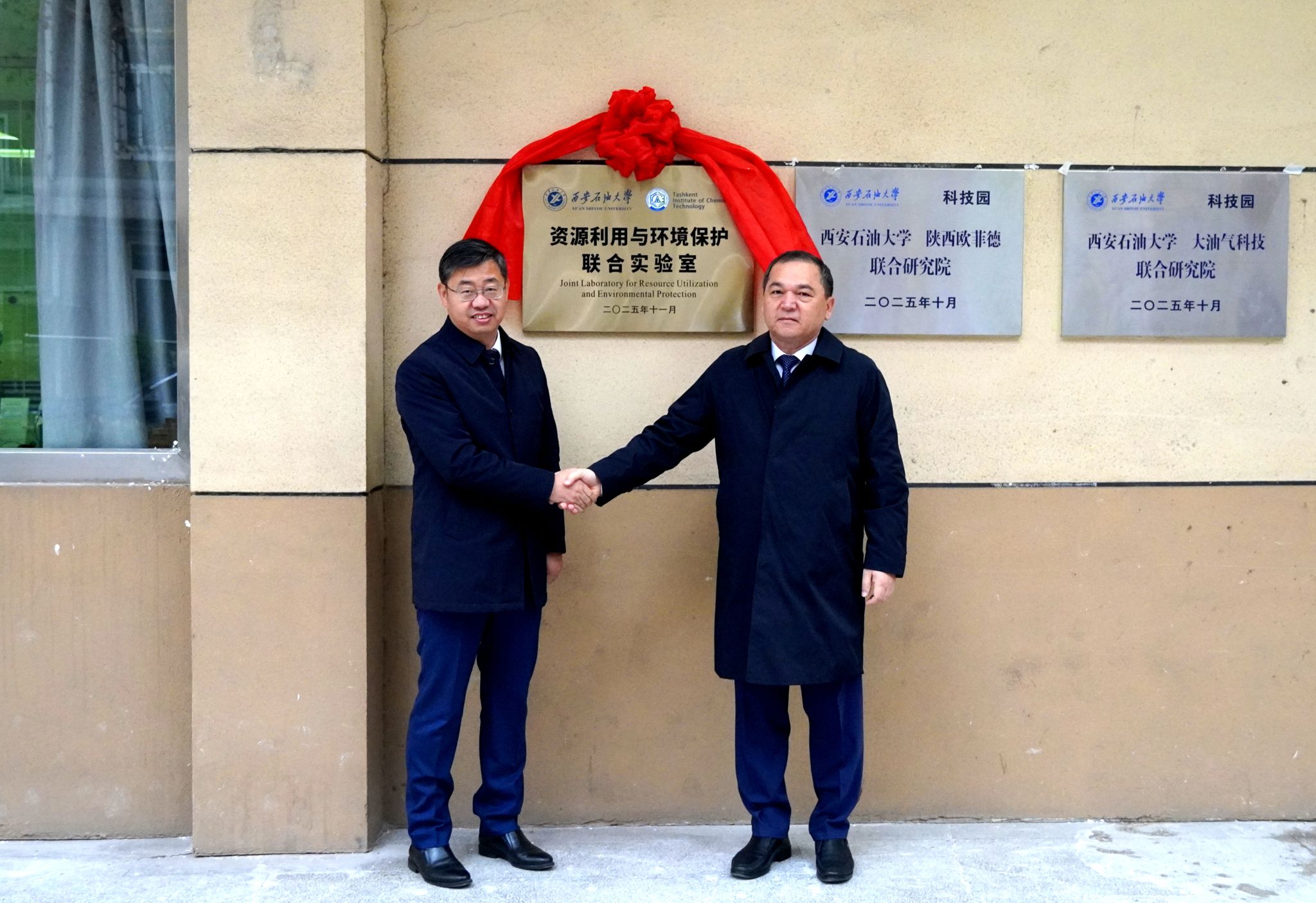 会上,两校校长共同签署《西安石油大学与塔什干化工学院共建资源利用与环境保护联合实验室协议》,并现场为“资源利用与环境保护联合实验室”揭牌。