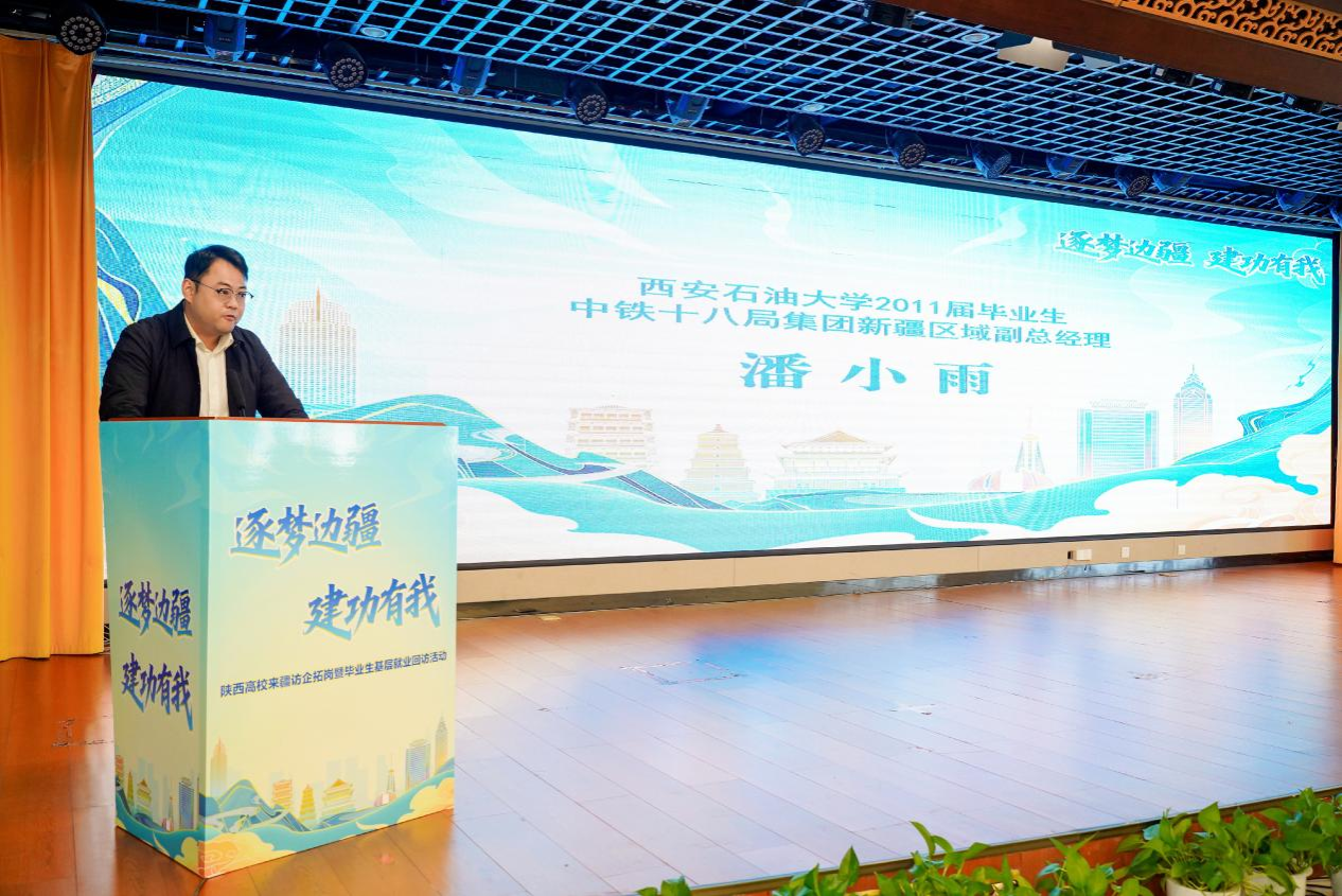 校企对接会上,新疆维吾尔自治区人社厅、新疆生产建设兵团人社局相关领导及企业代表详细介绍了新疆及兵团在产业升级、民生改善等领域的发展机遇,重点阐述了新能源、现代农业、矿产开发等行业的人才需求导向。省教育厅副厅长吴振磊推介了陕西高等教育学科优势与毕业生培养成果,强调了陕疆两地合作的契合点,提出建立常态化对接机制。我校副校长种宇宏介绍学校办学特色,强调学校在油气勘探开发、新能源利用等领域的积淀。我校毕业生潘小雨作为在疆就业优秀代表,分享了扎根边疆的工作成长感悟。