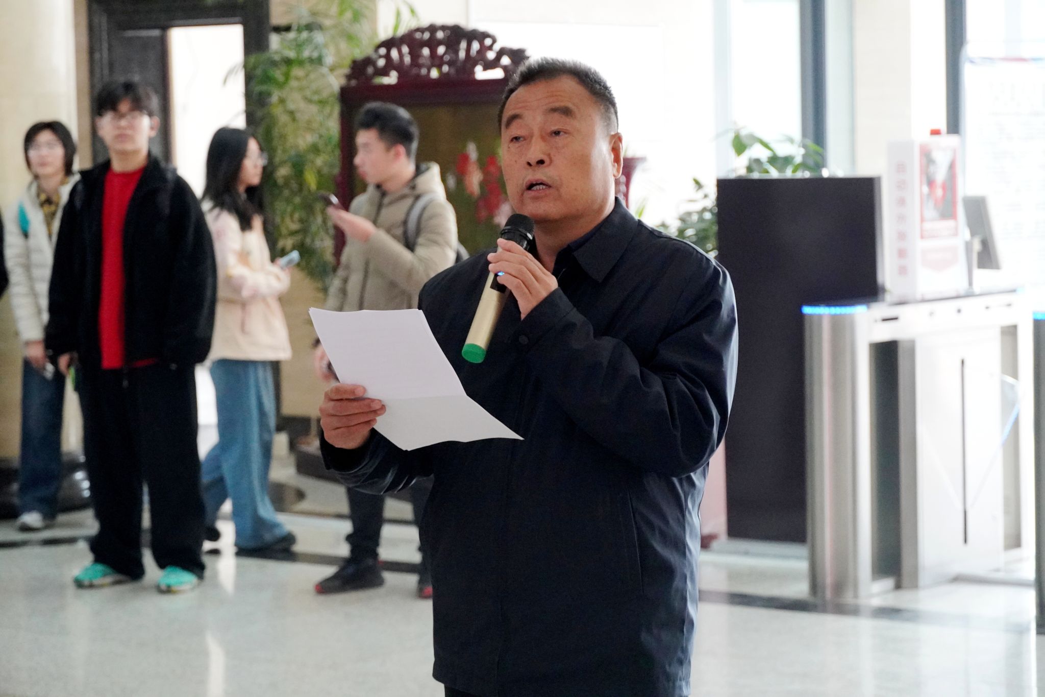 12月18日上午,“墨香迎新岁师生共华章”2026迎元旦师生书法联谊会在鄠邑校区图书馆举行,此次活动由图书馆、离退休工作处、人文学院、大学生书法协会联合举办。校党委副书记程永清出席活动并致辞,相关职能部门和院(系)负责人、校老年书画协会和退休老教师代表应邀出席,我校大学生书画协会全体会员、人文学院学生代表参加了活动,活动由图书馆馆长李涛主持。