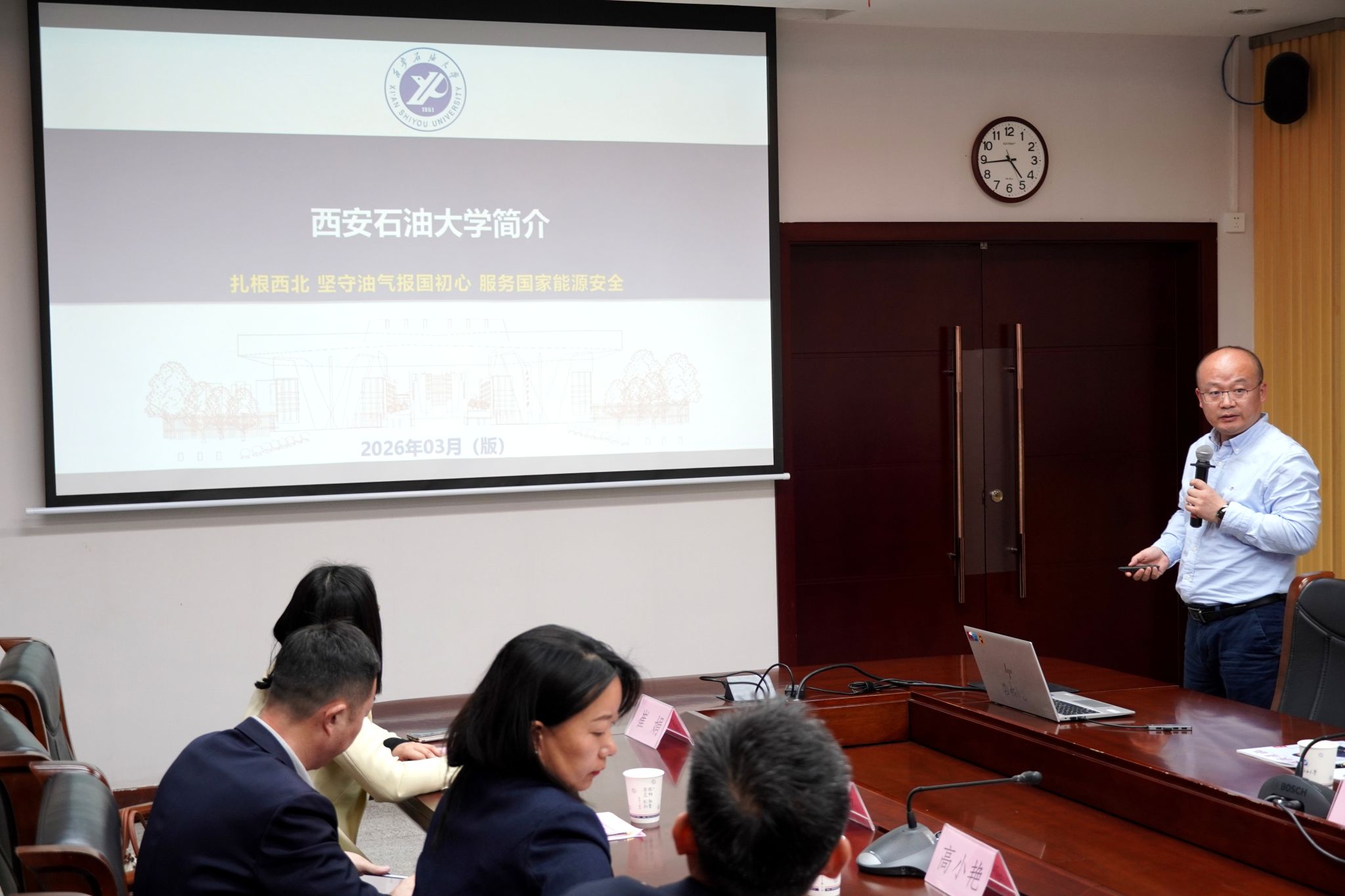 常江对刘浩春一行表示热烈欢迎,并介绍了学校办学历史、学科特色与创新发展情况。他指出,西安石油大学由习仲勋等老一辈无产阶级革命家关怀创立,是西北地区唯一以石油石化为特色的高校,建校以来始终坚守“石油精神办学、铁人精神育人、延安精神铸魂”办学理念,牢记“端牢能源饭碗”重大嘱托,聚焦油气全产业链与能源新质生产力,构建产学研深度融合体系,着力培养能源领域高素质创新人才。他强调,学校国际化办学成果丰硕,高质量布局土库曼斯坦鲁班工坊、乌兹别克斯坦分校、阿塞拜疆中阿联合大学,深度融入“一带一路”建设,构筑起面向中亚、开放共赢的国际化办学新格局。苏陕东西部合作发展促进会是深化苏陕合作、推进东西部协作的服务联络桥梁、经济协作纽带、创新平台载体,希望促进会加大对学校产教融合的支持力度,推动相关企业与学校在人才培养、科技创新、成果转化等方面深度合作,服务加快发展新质生产力,助力苏陕经济社会高质量发展,为保障国家能源安全、强国建设、民族复兴伟业提供有力支撑。