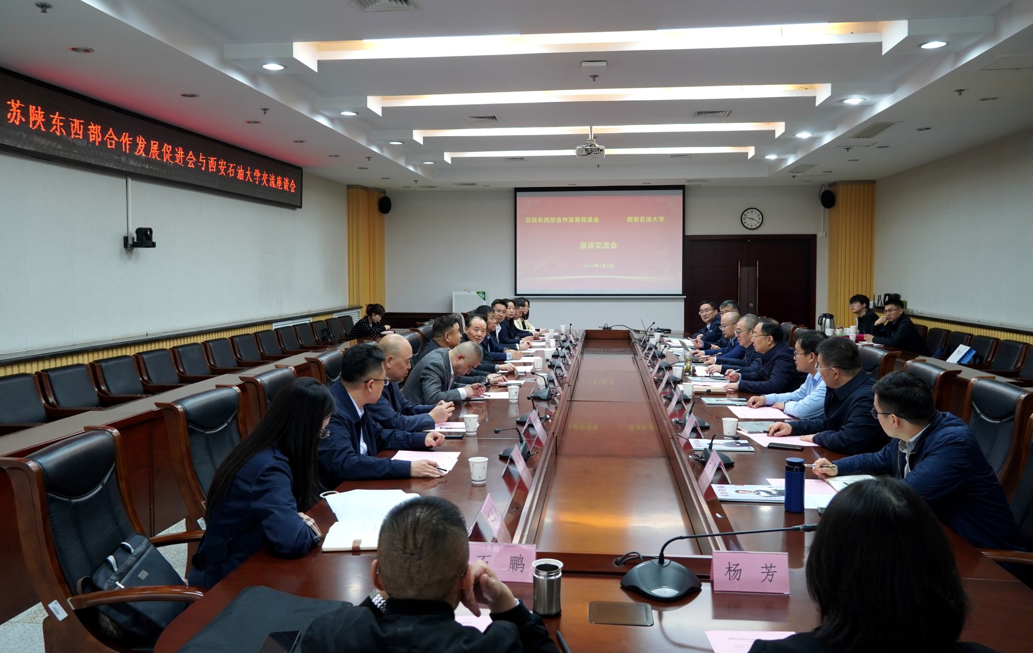 刘浩春介绍了苏陕东西部合作发展促进会的基本情况和主要工作。他表示,西安石油大学在服务国家能源战略、支撑区域能源产业发展、提升科技创新能力等方面作出重要贡献。促进会始终坚持搭建平台、开拓资源、创造机遇,与社会各界共话交流合作。希望通过此次交流,充分发挥平台优势,寻求双方在能源化工、智慧能源等领域合作机会,与学校建立长效沟通机制,共同探索产教融合新模式,为苏陕两地经济社会发展注入新的活力。
