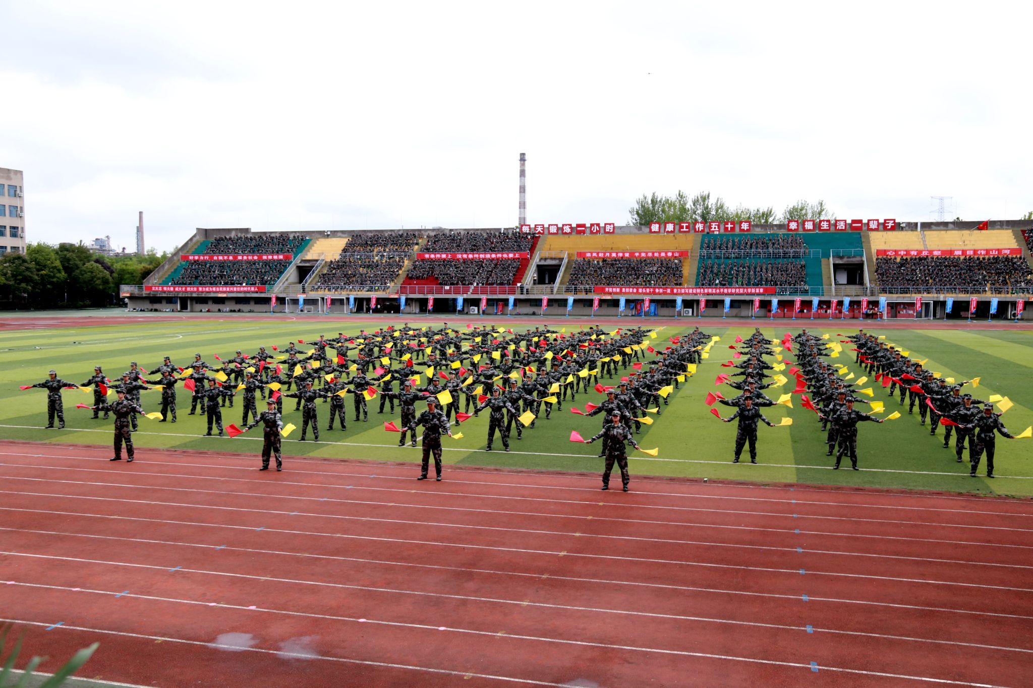 大会在庄严的升国旗仪式中拉开帷幕。国旗护卫队踢着铿锵的步伐,每一声踏地都犹如惊雷叩击青春热血;鲜艳的五星红旗冉冉升起,激昂的国歌声响彻校园,在场师生、教官庄严肃立,向国旗行注目礼。