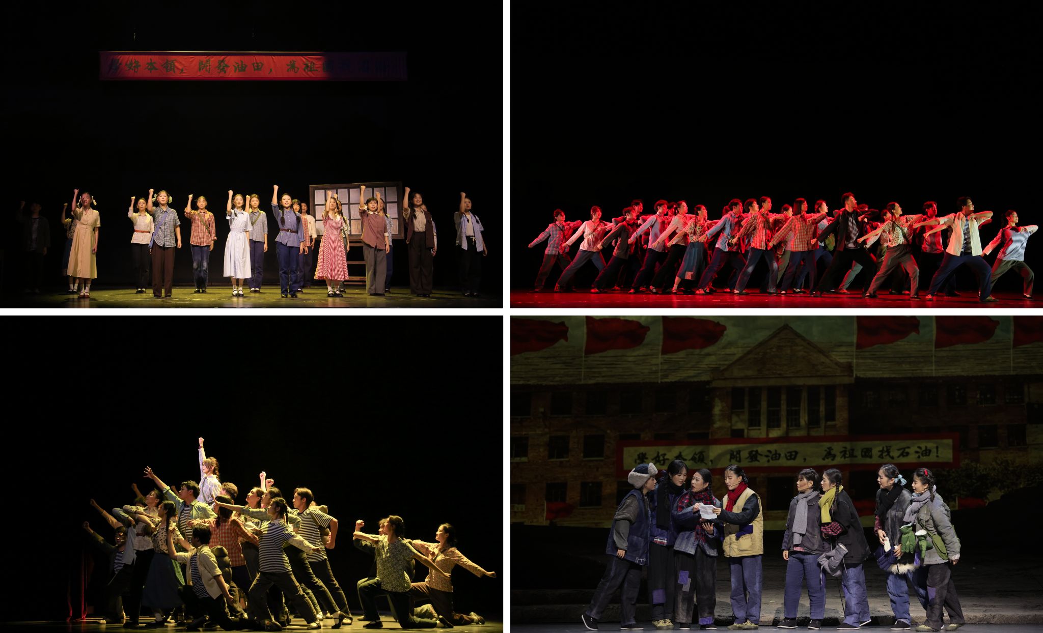 多元叙事融合,助力精神赓续。全剧分为“到大西北去”“到最艰苦的地方去”“到祖国最需要的地方去”三个逻辑紧密的篇章,以时空交错手法连贯历史与现实,展现了石油事业的奋斗历程与时代回响。作品综合运用音乐、舞蹈、戏剧等多种舞台语言,结合精心设计的舞美,构建出沉浸式视听场景,极大地增强了剧目的艺术感染力与视觉冲击力,通过现代艺术手法与多元叙事结构的融合,实现了精神传承与艺术呈现的深度融合。