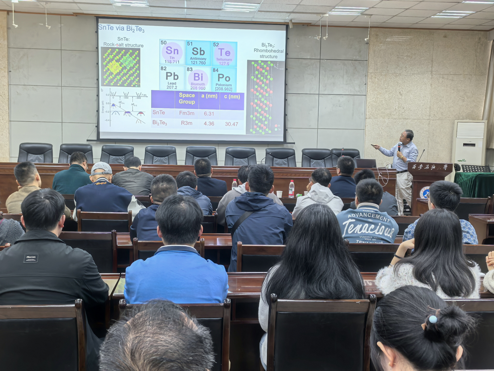 聘任仪式后,邹进教授为学校师生作了《先进电子显微学在纳米材料中的应用及Nanoscale,Nanoscale Advance期刊介绍》的学术报告。他结合自身近40年的研究实践,深入浅出地介绍了透射电子显微镜、原位电子显微技术等尖端表征手段的原理与发展,分享了其团队通过先进电子显微镜技术在低维纳米材料形态、微结构和化学特性方面取得的研究成果。并就“透射电镜(TEM)操作”“国际交流合作”等问题与现场师生进行互动。