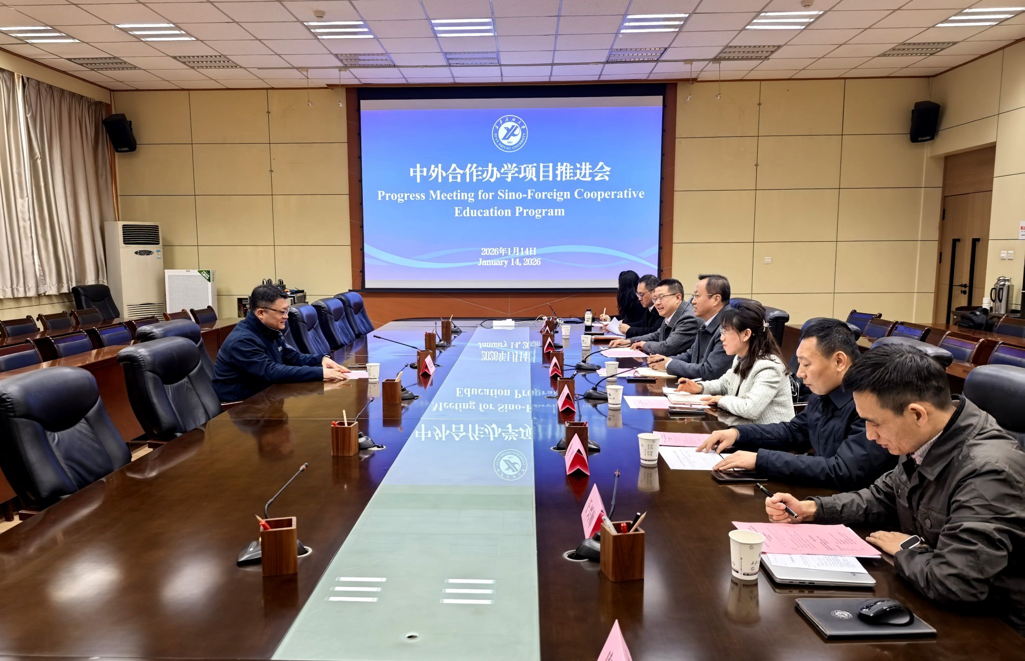 1月14日上午,我校与新西兰国立联合理工学院在雁塔校区会议中心第一会议室召开中外合作办学项目推进会。新西兰国立联合理工学院代表李长学、我校副校长张荣军出席会议,国际合作与交流处、研究生院、计算机学院、继续教育学院等单位相关负责人参会。