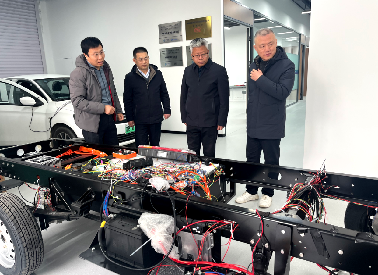 座谈会结束后,在杨阳副主任陪同下,张骁勇一行前往陕西智能网联汽车研究院有限公司走访交流,先后参观了企业展厅、检测中心、汽车信息安全联合实验室、车联网联合实验室、技术检测联合实验室及智能网联汽车安全监测平台,详细了解企业的发展历程、核心技术、研发实力、产业布局以及人才需求情况,直观感受企业在智能网联汽车领域的创新成果与发展潜力。张骁勇表示,学校计算机学院在人工智能、大数据、网络安全等领域的学科优势与企业发展需求高度匹配,希望双方以此次走访为契机,搭建合作桥梁,探索实习实践基地建设、技术协同攻关等合作路径,实现科研资源与产业需求精准对接,同时为学生提供优质实习实践平台,助力学生提升专业能力、拓宽就业视野。企业相关负责人对学校的学科优势和人才培养质量给予高度评价,表达了与学校深化合作、吸纳优秀毕业生就业的积极意愿。