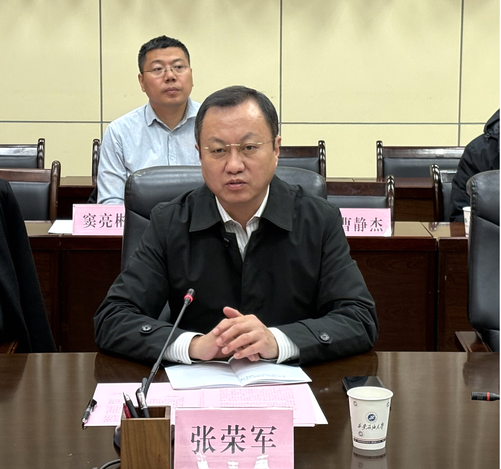 张荣军对王亮一行到访表示热烈欢迎,向中绿盟对我校科技事业发展的支持表示衷心感谢。他指出,学校在能源资源领域拥有深厚的科研积淀,尤其在非常规油气勘探开发、油气与新能源融合等方面形成了鲜明特色和显著优势,期待通过与中绿盟的紧密合作,进一步围绕能源领域的科技创新、人才培养、成果转化等方面开展更为广泛的合作。