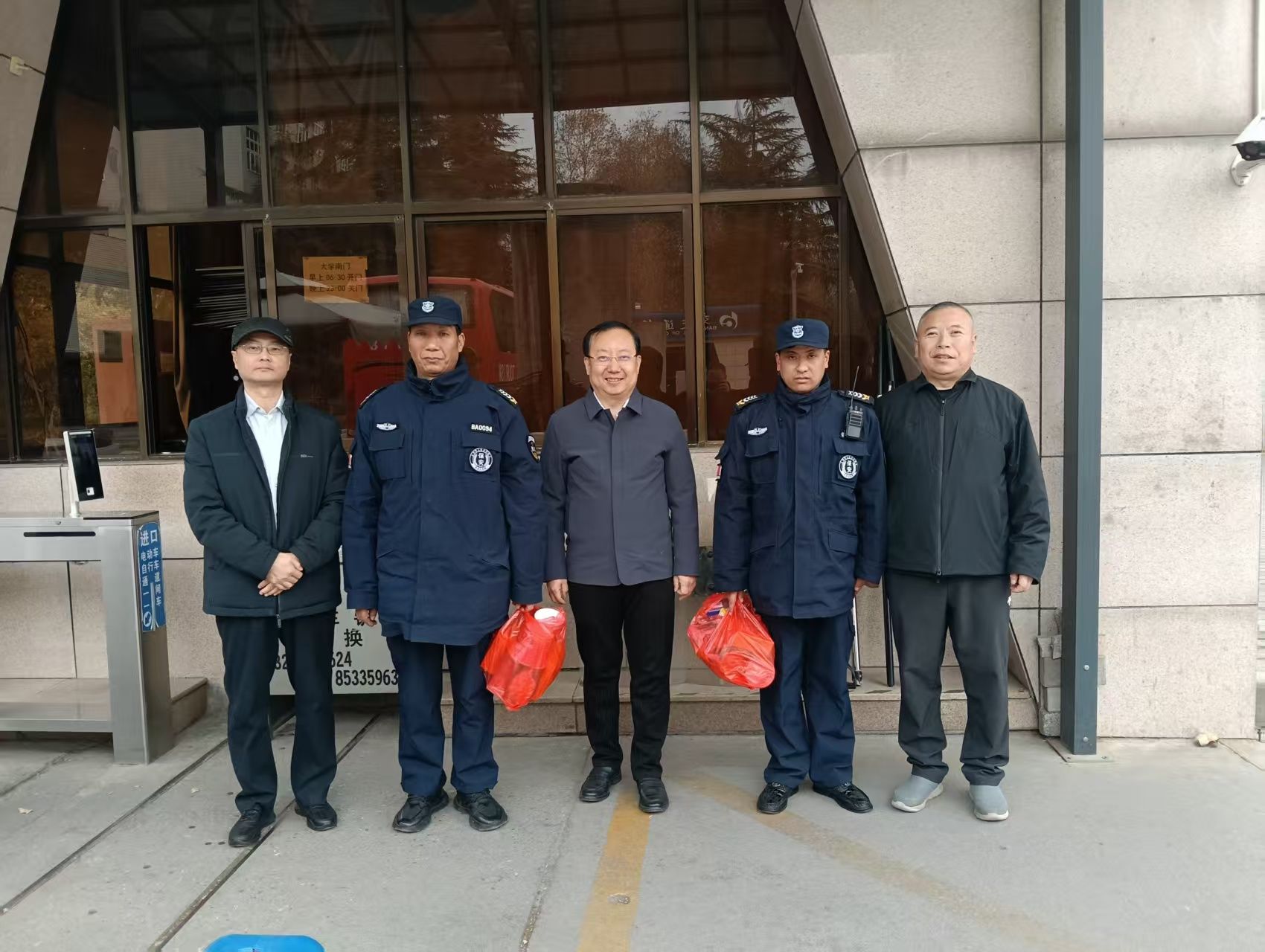 2月15日上午,在丙午马年春节即将来临之际,副校长种宇宏带队看望慰问寒假及春节期间坚守一线岗位的安保工作人员,代表学校向他们致以诚挚感谢和新春祝福。