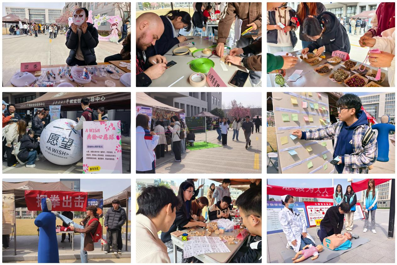 各院(系)紧扣“一院一品”建设要求,结合自身专业特色,推出25个形式新颖、贴合学生需求的心理体验项目。校团委开展的情绪面具DIY、心理委员联合协会的“隐色”刮刮画等活动,引导学生理性表达情绪、坦然接纳自我;石油工程学院的DIY安神香囊、地球科学与工程学院的共绘心愿球等活动,帮助学生舒缓焦虑、坚定信念、树立积极进取的人生目标;管道工程学院的“益智积木拼图”有效提升学生专注力与耐心;经济管理学院通过怀旧游戏唤起学生美好集体记忆;外国语学院“译中人”活动通过对同一句话的不同翻译,觉察个人投射;体育学院的拳击互动让学生在酣畅淋漓中释放压力;校医院同步开展急救技能培训与健康知识科普,切实增强学生的健康防护意识与应急处置能力。