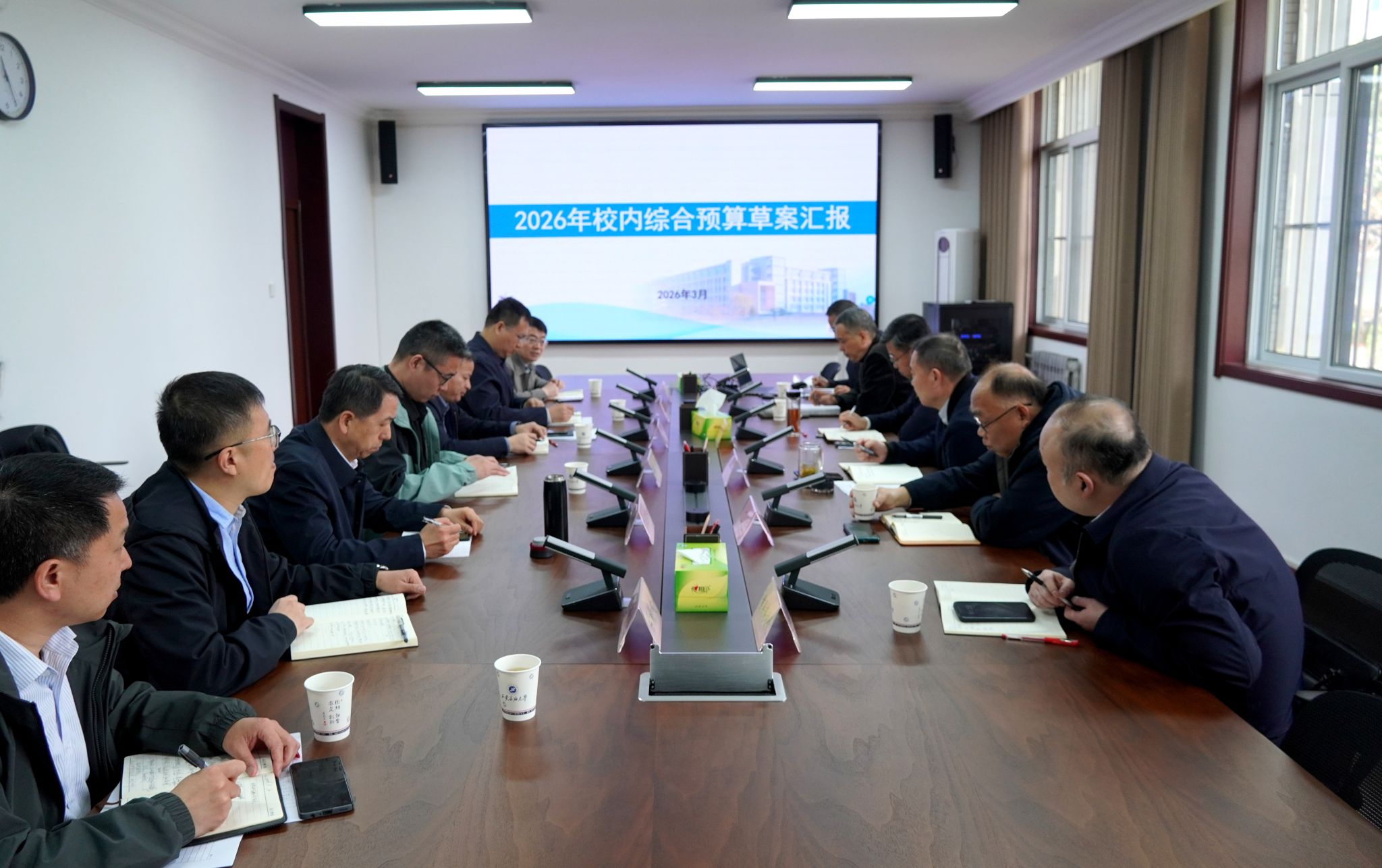 王进富在讲话中对做好今年财经工作提出具体要求。一是要强化认识,增强对预算编制重要性的认识。预算不仅是一张表格,更是学校发展的“方向盘”和“钱袋子”。预算具有政治属性、发展属性及民生属性,年度总盘子规模及内部结构直接反映学校的发展方向与工作重心。各部门在编制预算时要站在学校层面上进行系统设计,以发展的眼光通过资金规模来引导结构优化与质量提升。二是要把握原则,提高预算编制的科学性。预算编制基本原则是“量入为出、收支平衡”,在发展层面上坚持结构性原则,保运转、保民生、促发展,同时要联动社会资源以减轻学校财务压力。三是要严格执行,提升预算执行效率。收入多渠道争取经费,各部门要积极对接上级部门,争取超长期国债、人才经费及学科建设等专项资金;支出注重节约与绩效管理,确保每一笔资金投入都能产生显性的发展成效。四是要精细管理,优化预算编制方案。优化预算编制,预算安排必须具备对应的可执行项目及可评价方案,确保资金使用产生实际显示度,让师生能切实感受到变化,并对最终成效进行考核评价。